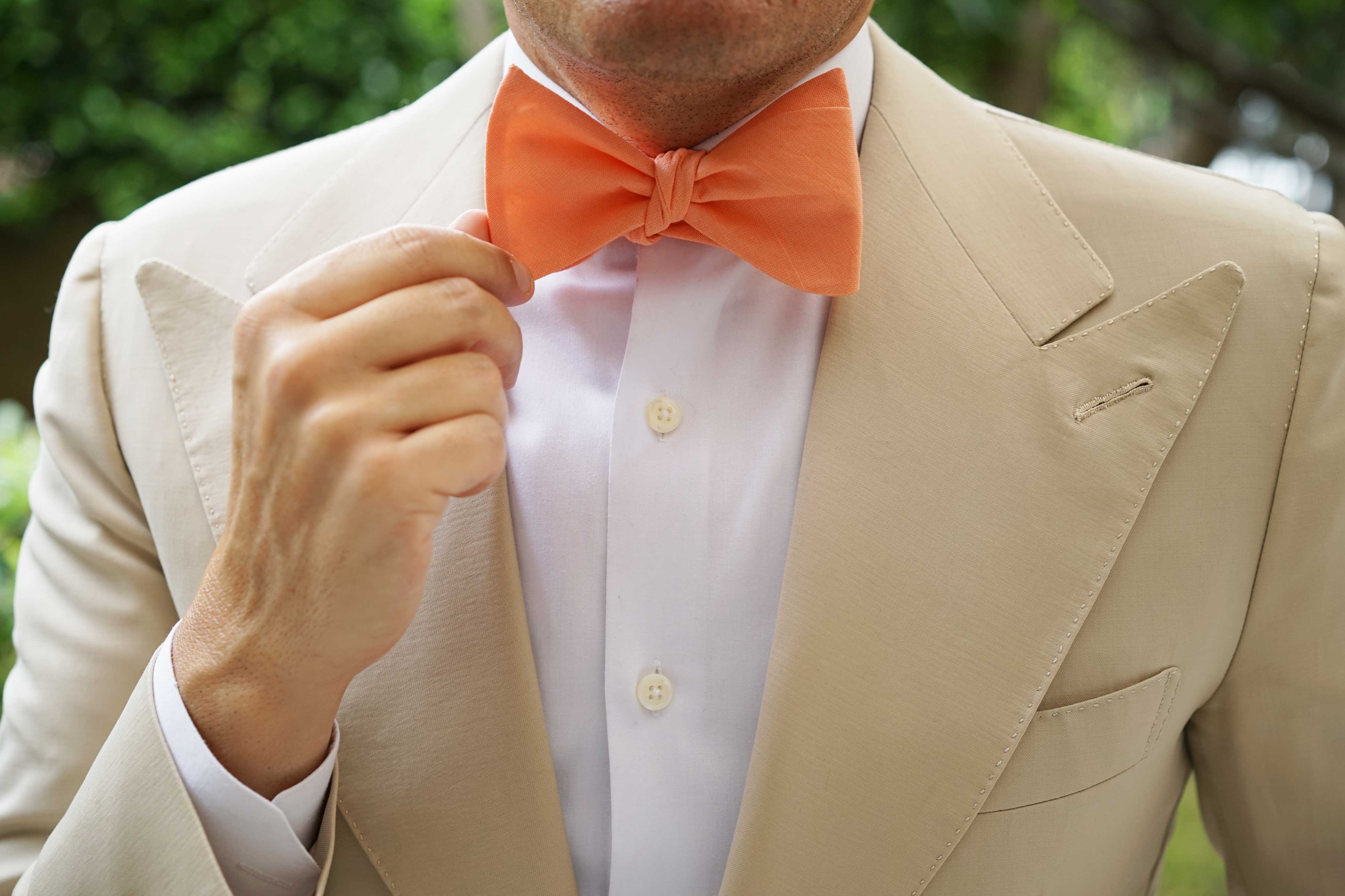 Suit up to perfection with the Coral Pink Linen Self-Tie Bow Tie by The Brothers at OTAA. This Coral Pink Linen Untied Bowtie features a refined matte finish, giving just the right amount of sheen that's perfect for formal events, important business meetings or weddings. This durable tie is never short on style and you'll be receiving compliments for years to come.