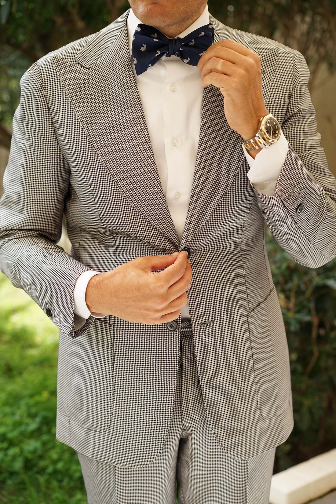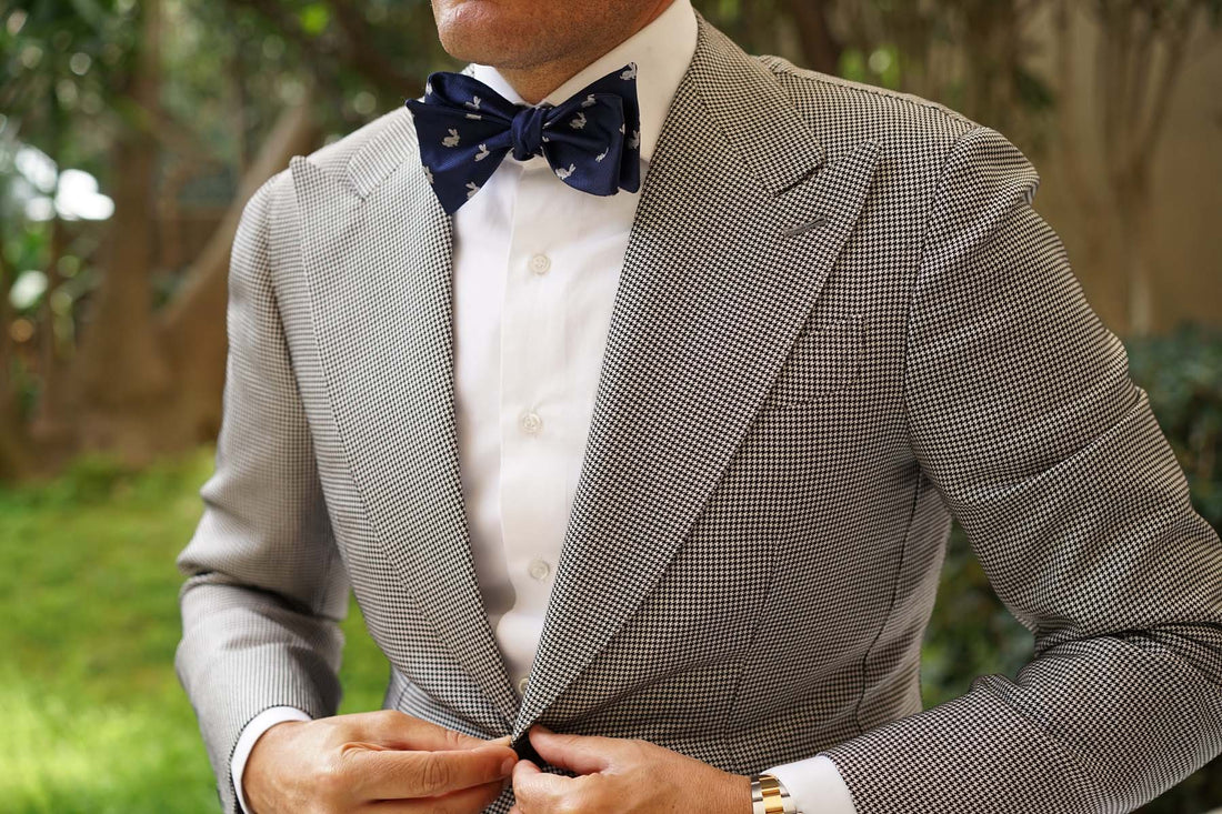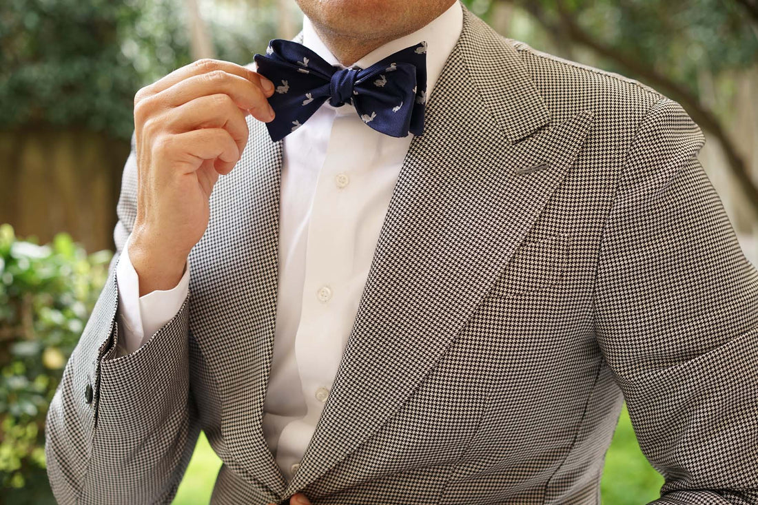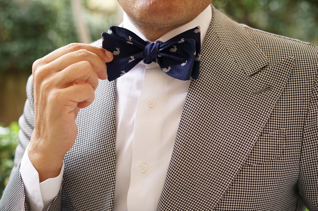 “Oh, my fur and whiskers! I’m late, I’m late, I’m late!” - OTAA’s Curious Rabbit Self Tie Bow Tie is inspired by Lewis Carroll’s Alice’s Adventures in Wonderland. Charmingly tessellated with curious grey rabbits, this untied bow tie is stitched by hand on an elegant navy blue fabric. The luxuriously woven fabric of this design is hand-tailored to perfection to give your evening looks a luxurious point of difference. Subtly textured, the Curious Rabbit Self Tie Bow Tie provides a multifaceted design. Wear it to complement your boardroom ensembles with finesse. Designed exclusively by the Brothers at OTAA.