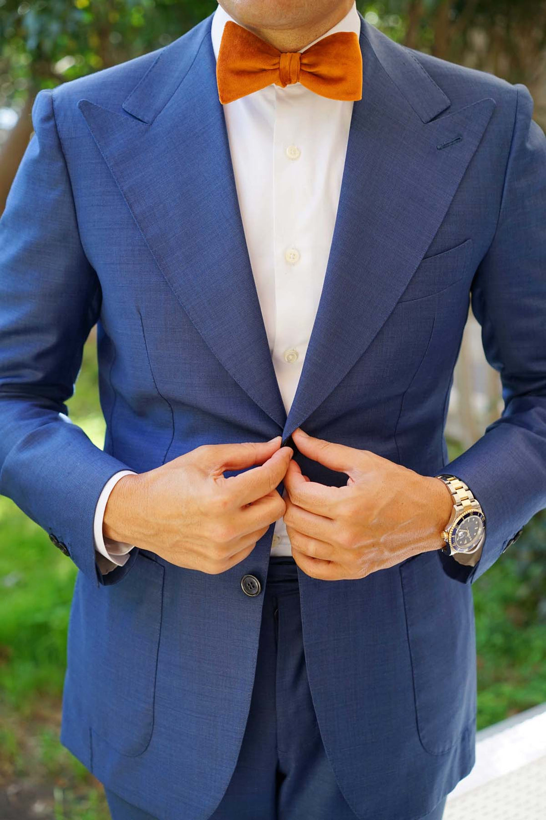 Bring a brooding feature to your tailored ensembles with the indulgent hues of OTAA’s Dark Autumn Gold Velvet Self Bow Tie. This seasonal wedding favourite combines the lustrous tones of burnt gold and hazelnut to provide a truly unique formal accessory. The Dark Autumn Gold Velvet Untied Bow Tie pairs superbly with your classic formal tailoring choices and will escort you to any occasion with the most exquisite sense of sophistication. Handcrafted using the most plush velvet fabric available, this Dark Autumn Gold Velvet Self Tie Bowtie effortlessly marries comfort with opulence. It will be your prized go-to every time you need to dress to the nines. Designed exclusively by The Brothers at OTAA.