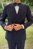 OTAA’s hand-stitched approach to design makes this pre-tied bowtie a stand-out option for luxurious style. The linen fabric imbues a textural feel that’s breathable and slightly weighty. Showcasing a decadent dark blue palette, this denim pre-tied bowtie is intercepted by subtle hints of white stitching for a laidback outlook. Designed exclusively by the Brothers at OTAA.