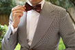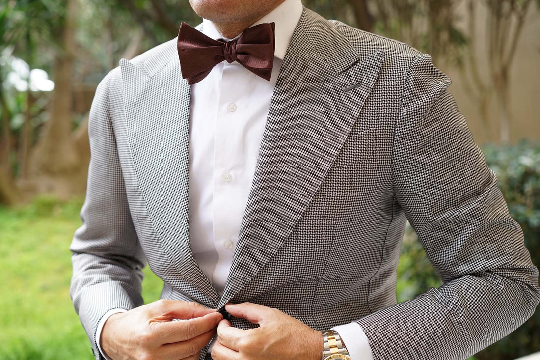 OTAA’s Dark Brown Weave Self Tie Bow Tie will incite your style with flawless elegance. Heavenly detailed and tailored to perfection, this untied bow tie features diagonal striped embellishments for a textured look. The deep chocolate palette gives this untied bow tie a vintage appeal, complementing a myriad of outfit styles with excellent versatility. Crafted by hand and tailored from a plush fabric, this Dark Brown Weave Self Tie Bow Tie demonstrates OTAA’s dedication to superior quality. Wear it to achieve a sophisticated aesthetic at your formal events; alternately add it to your work-week roster for an accomplished arrangement. Designed exclusively by the brothers at OTAA.