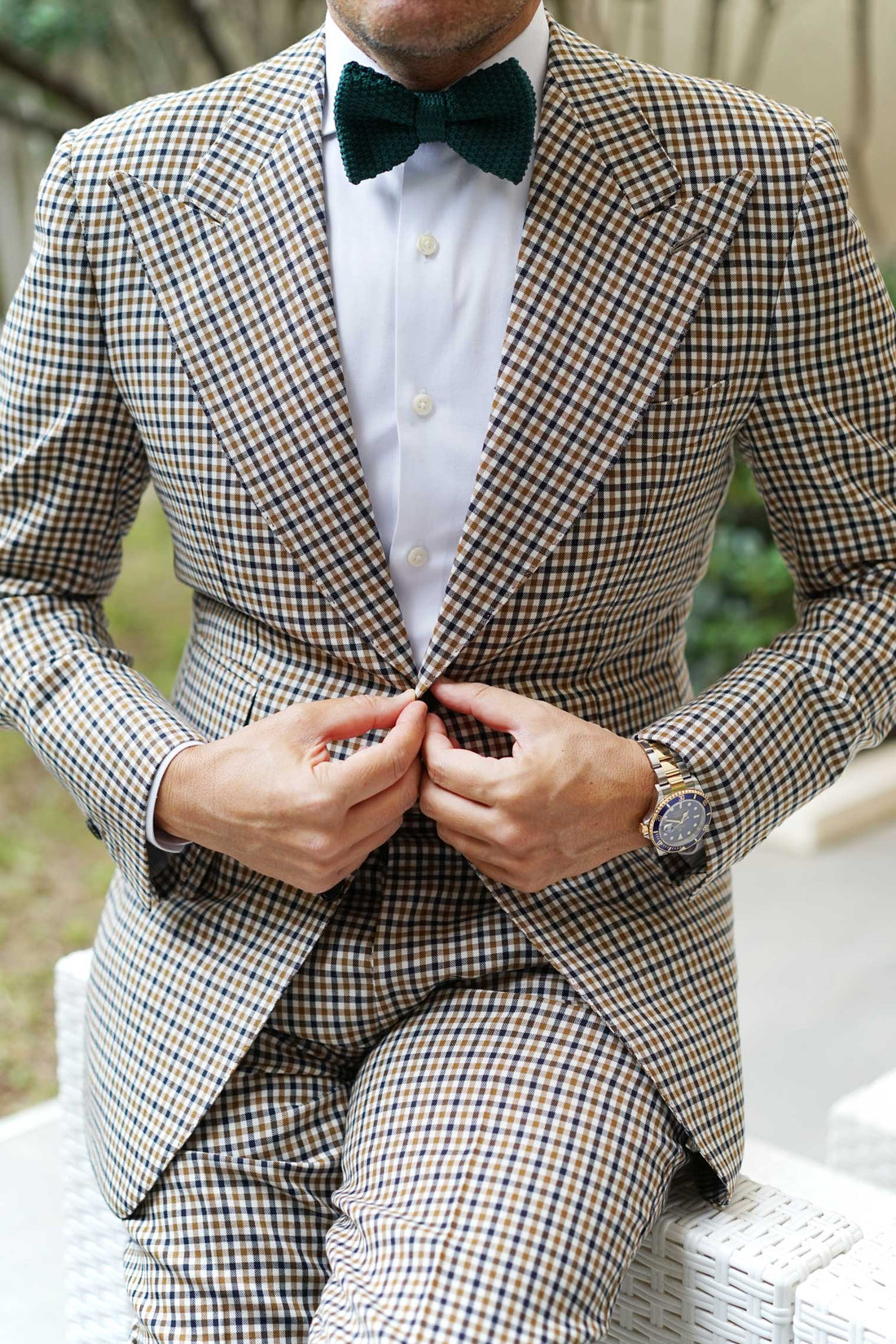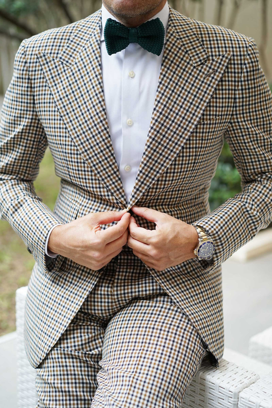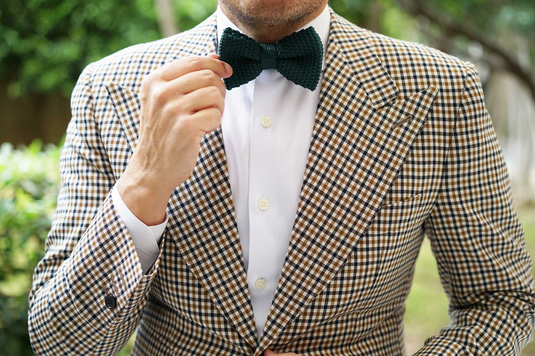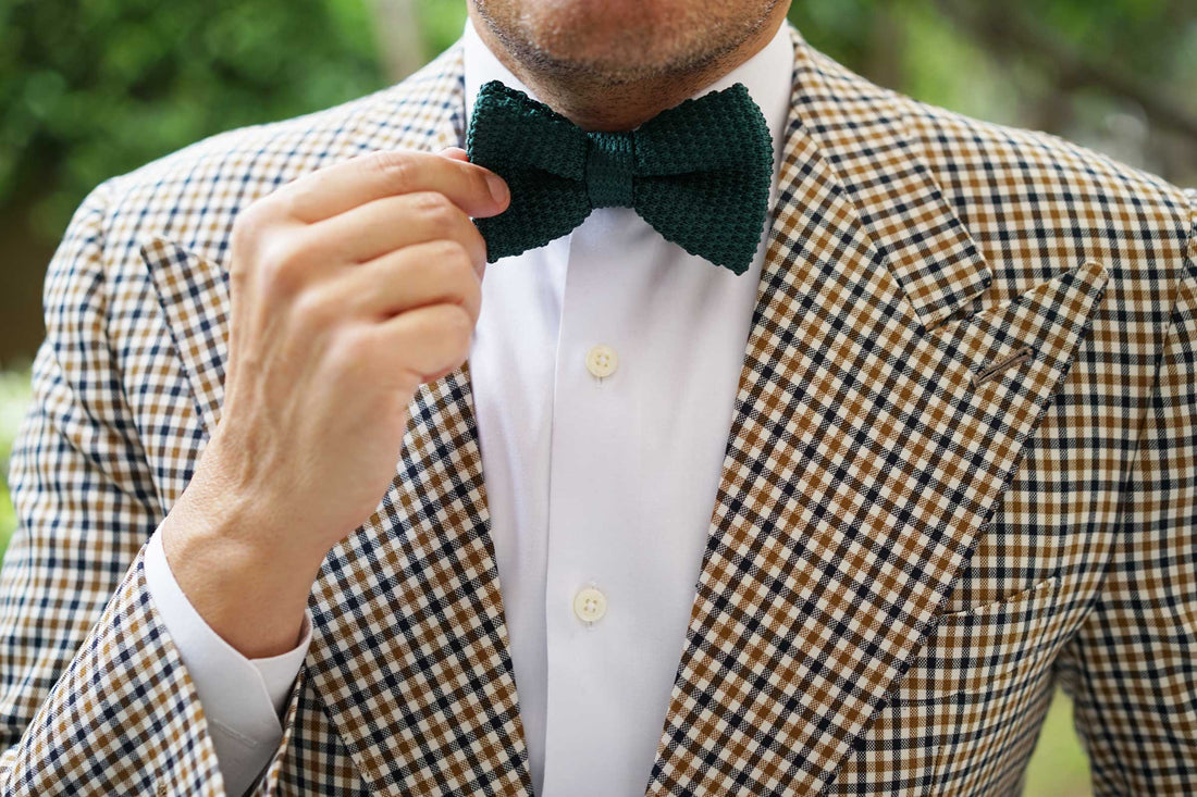 Add texture to formal suiting with OTAA's Dark Green Knitted Bow Tie. This luxurious piece has been partially backed with the label's signature grosgrain ribbon to ensure it sits smoothly around your collar.
