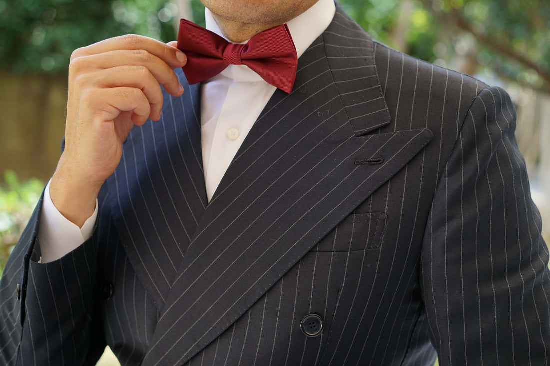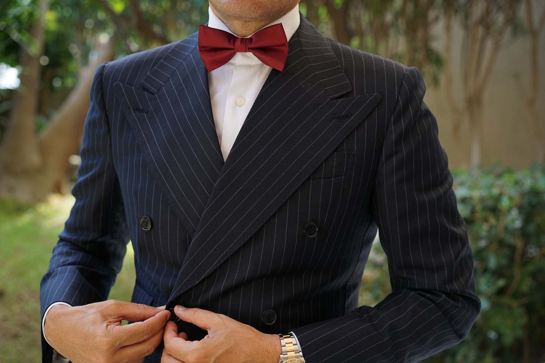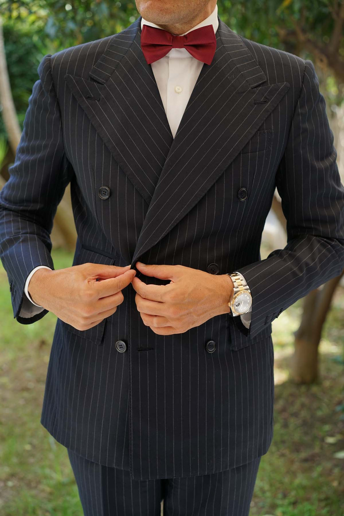 The maroon Bow Tie is a simple design but essential for formal and other pre-tied bow tie events. The thin pre-tied bow tie style is perfectly matched with the burgundy colour and creates a classy look.