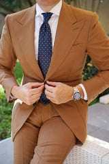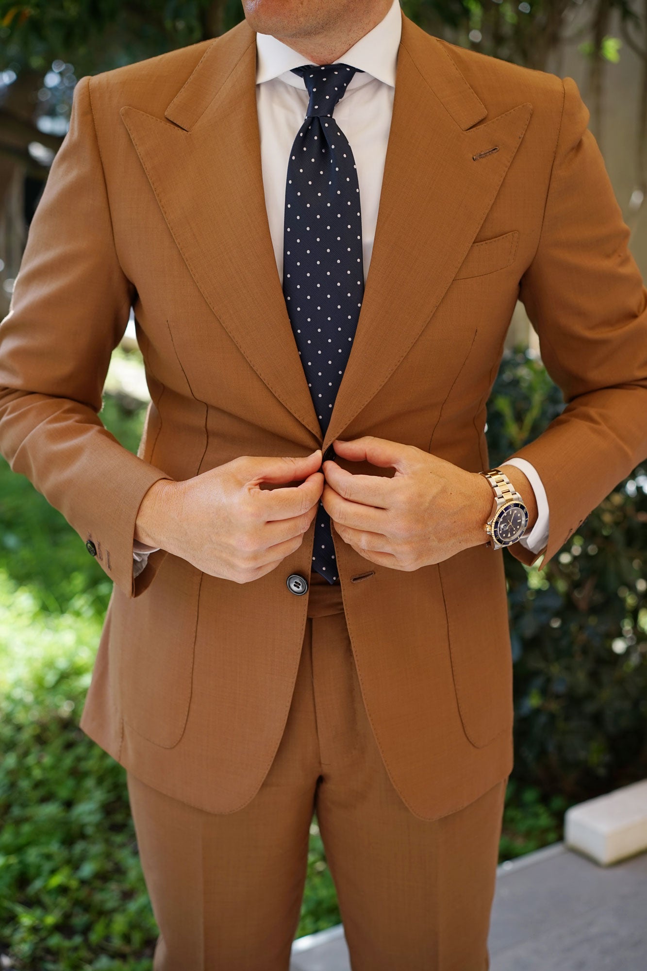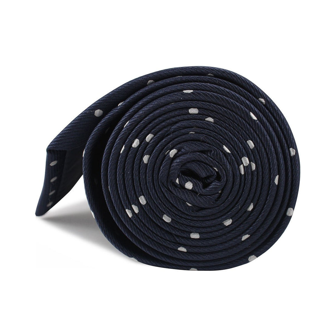 Menswear style is all about the details, and this simple polka dot print is sure to do the trick. Made by hand, this Dark Midnight Blue with White Polka Dots Necktie gives an updated spin on a classic print.