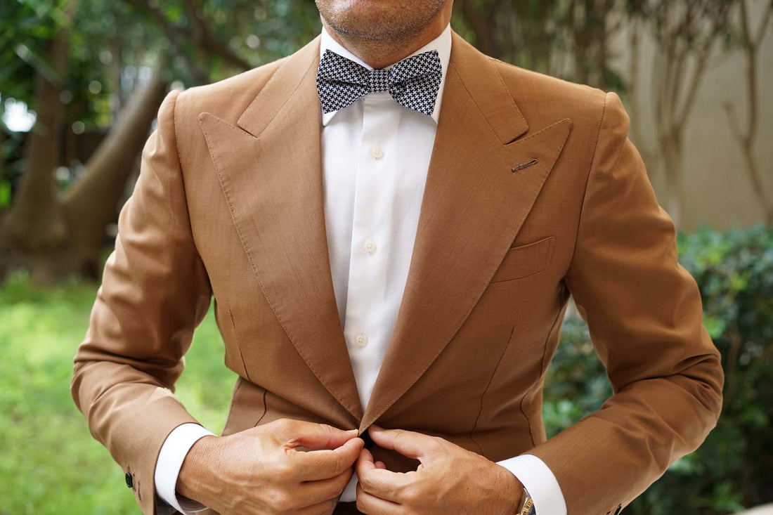 Finessed with an intricate houndstooth pattern, this bow tie features an indulgent palette of blue and white hues. Stitched by hand and tailored to perfection, the superior quality of this pre-tied bowtie is unmistakable. The eye-catching houndstooth pattern features abstract four-pointed chequers that will ensure your tailored looks boast eye-catching appeal. Designed exclusively by the Brothers at OTAA.