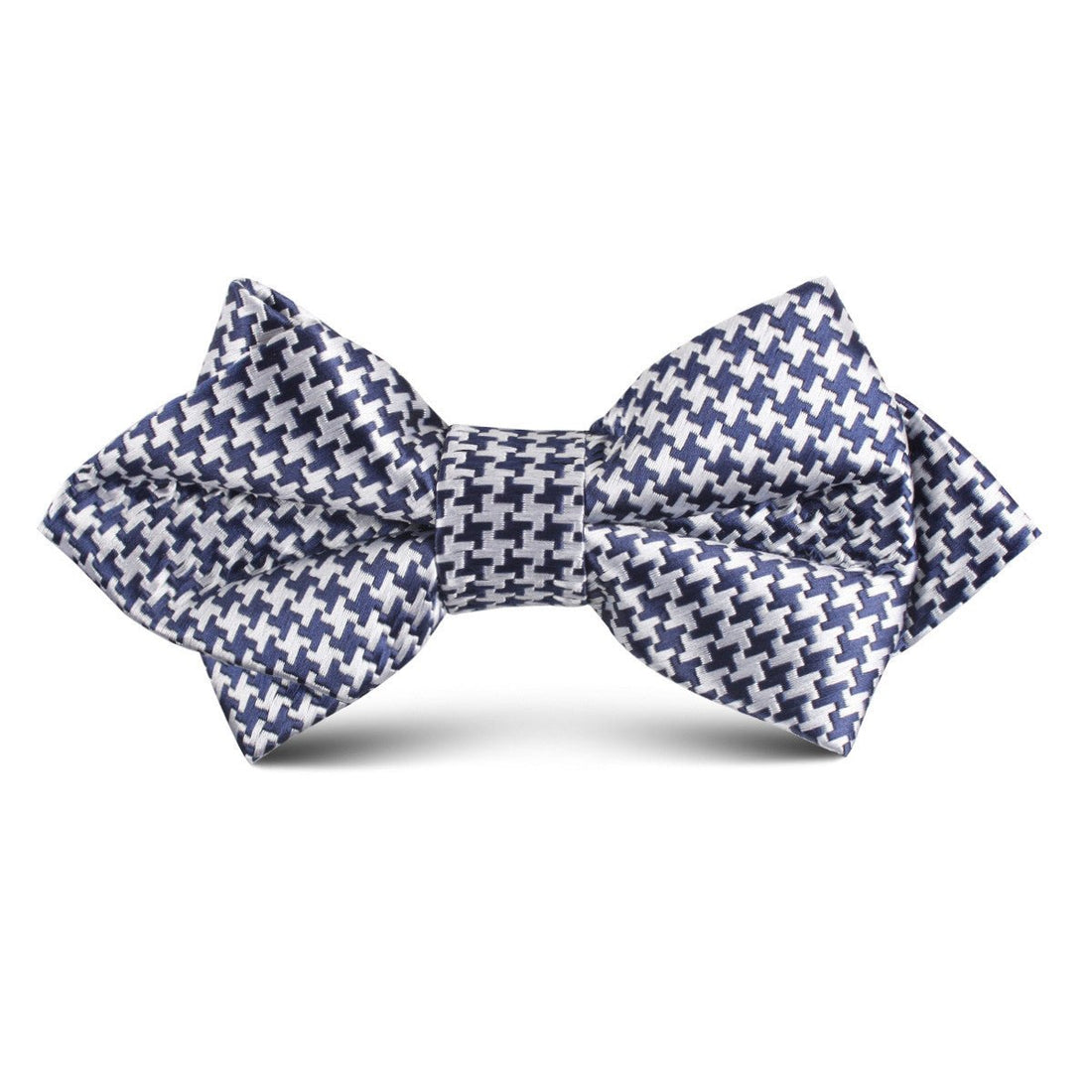 Finessed with an intricate houndstooth pattern, this kids diamond bowtie features an indulgent palette of blue and white hues. Stitched by hand and tailored to perfection, the superior quality of this Deep Blue Houndstooth Boys Diamond Bow Tie is unmistakable. The eye-catching houndstooth pattern features abstract four-pointed chequers that will ensure your child’s formal looks boast an eye-catching appeal. Designed exclusively by the Brothers at OTAA.