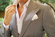 The Brothers happened upon this impressive fabric while pearl diving off the coast of the Lofoten Islands. Knowing they had found treasure when they saw an oyster the size of a small corgi, the legendary sea creature revealed the treasure as they swam towards it. At first, the Brothers were blinded by a golden light shining brightly from within the shell, but when their eyes adjusted they were finally greeted not with the pearl they were expecting. But with something even better; this stunning Handkerchief. They say pressure makes diamonds but the Diamond White Chevron Handkerchief takes all the pressure out of looking spectacular, so it’s a good thing we’ve made this diamond in advance.
