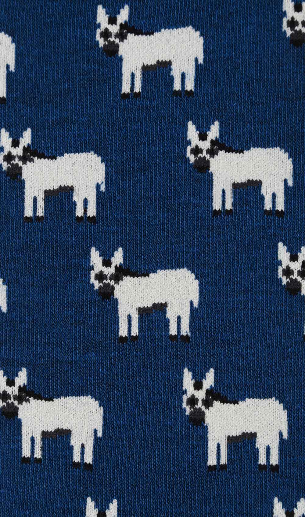 These Donkey Socks are guaranteed to fill your peers with ee-awe. Donkeys are often classed as the horse's slightly less attractive and slightly less bright relative, but here at OTAA, we think the donkey has some degree of aesthetic potential. That's we printed it on these socks. These Donkey Socks boast a cool palette of grey and two shades of blue that will pair perfectly with any outfit. They are finely crafted from a plush combed cotton material and finessed with a 200 needle stitch. Give the donkey a chance.