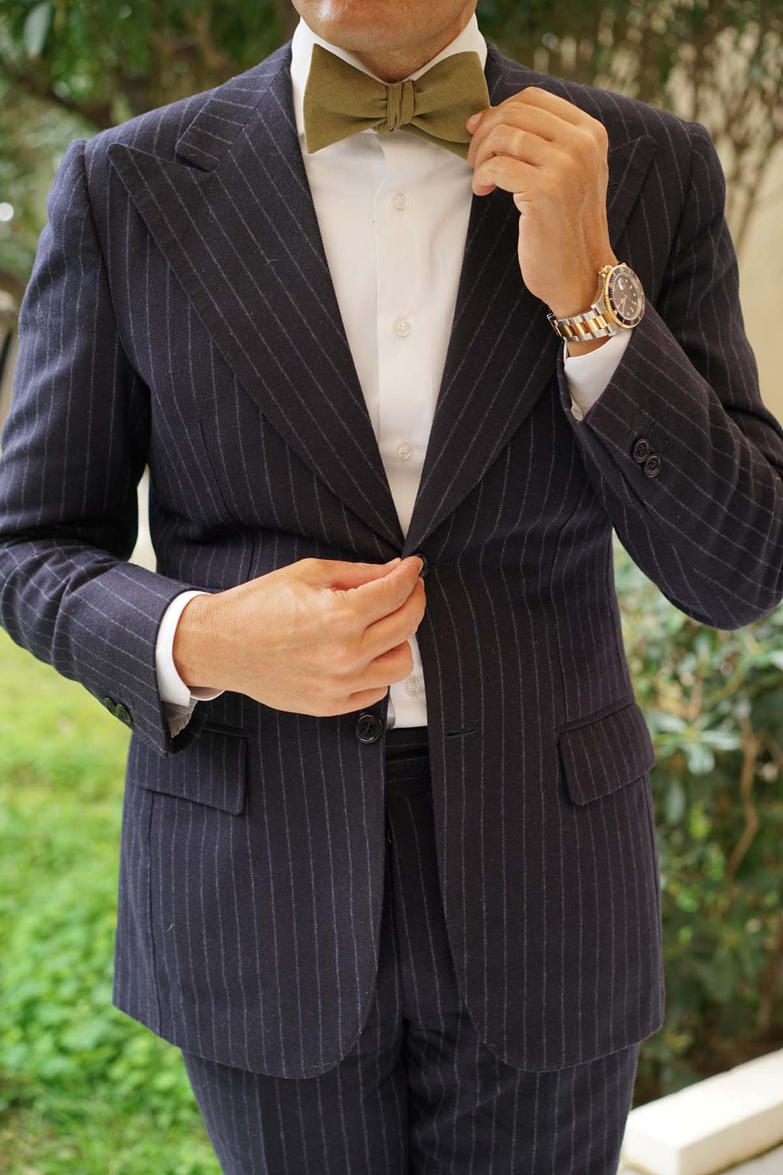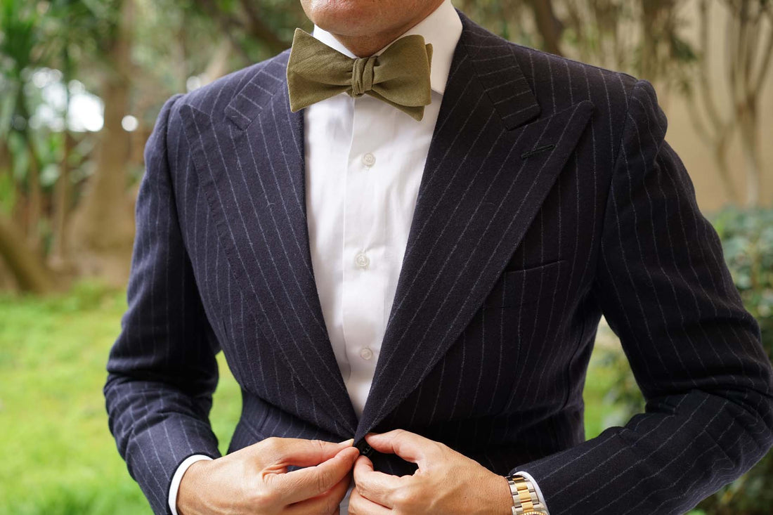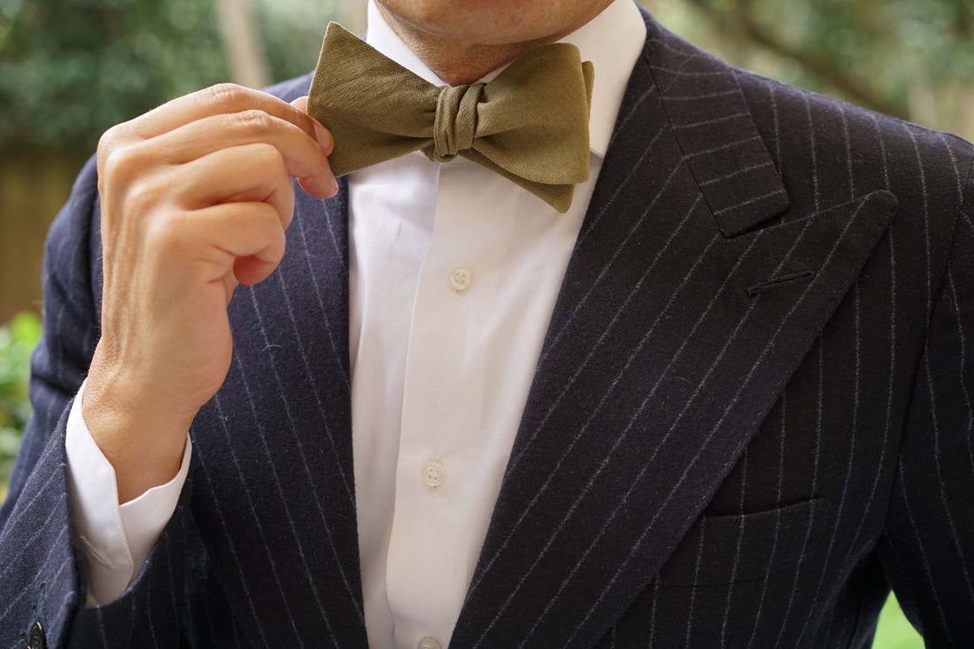 Dry Green Khaki Linen Fabric Self Bowtie