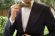 OTAA’s adventurous Dry Green Khaki Linen Self Tie Bow Tie provides a breathable fabric that’s lightly textured to the touch. The decadent khaki green palette brings a refined feature to your formal tailoring and will uplift casual looks with a note of finesse. Hand-stitched and tailored to perfection, this superb untied bow tie emanates a high-quality presence as part of suit ensembles. Designed exclusively by the Brothers at OTAA.