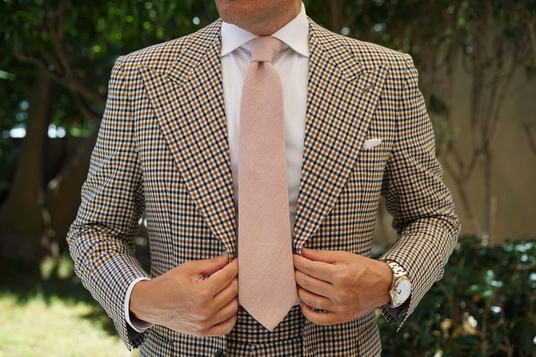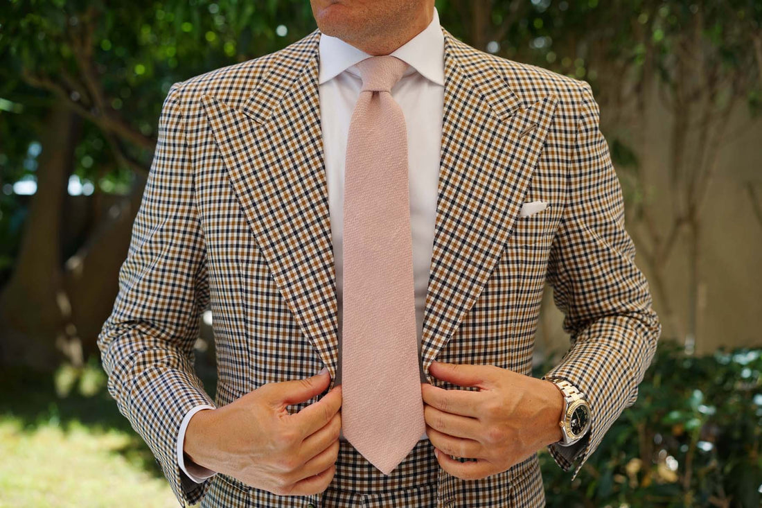The rugged linen enriches the visual scope of the necktie with varying thickness to the plush hand-woven Dusty Beige Pink coloured thread. The airy linen fabric is somewhat coarse, with an added texture of softness. The Dusty Beige Pink Linen Tie will enrich your formal combination with stellar charm.