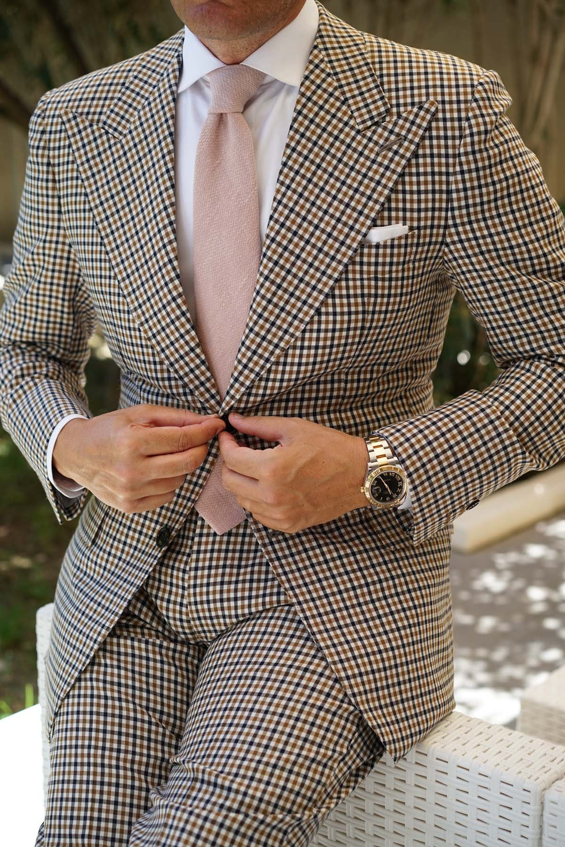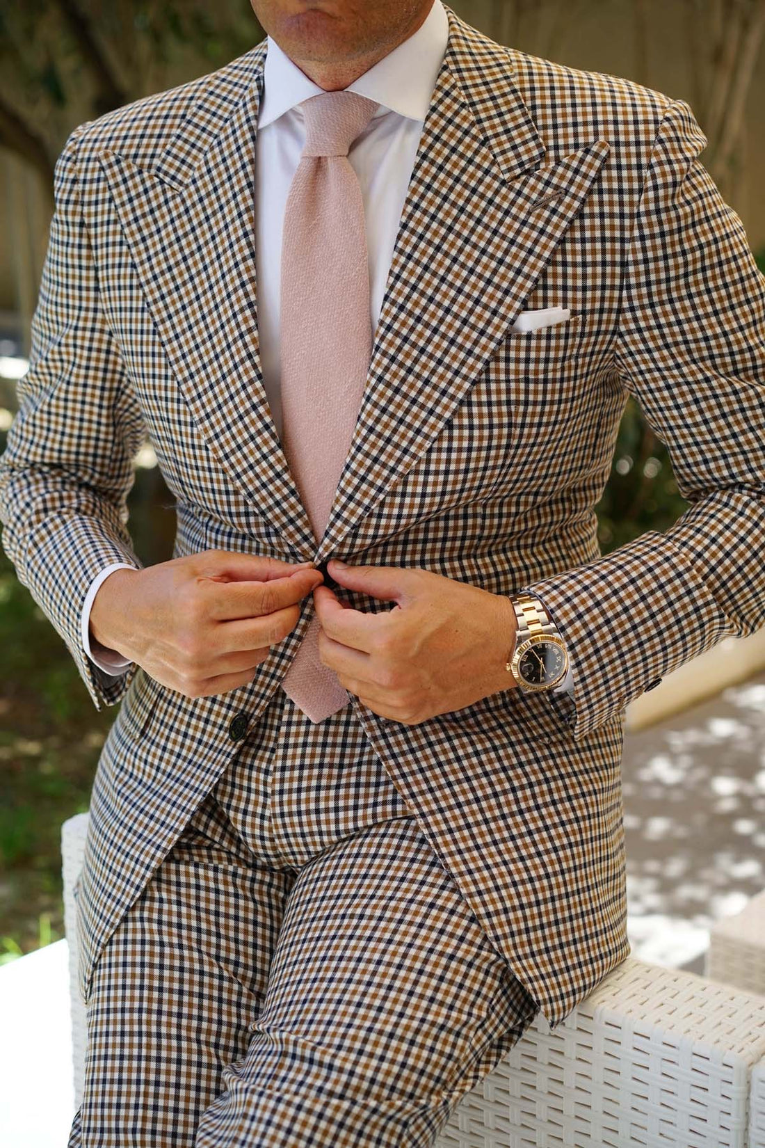 Luxury and prestige are seamlessly married into the body of the Dusty Beige Pink Linen Necktie exclusively from The Brothers at OTAA. The necktie is trimmed with the appealing grain of hand-stitched linen, tailored to be compatible with the most stellar ensemble.
