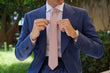 Luxury and prestige are seamlessly married into the body of the Dusty Beige Pink Linen Skinny Tie exclusively from The Brothers at OTAA. The Skinny Tie is trimmed with the appealing grain of hand-stitched linen, tailored to be compatible with the most stellar ensemble.