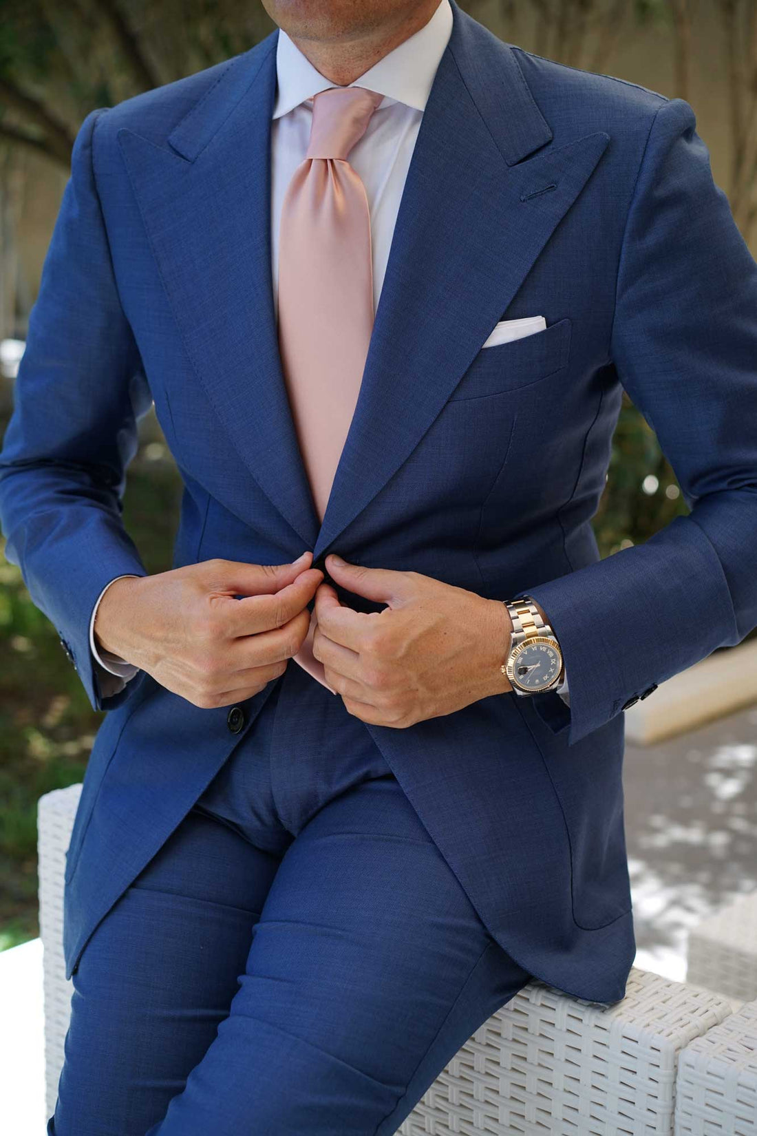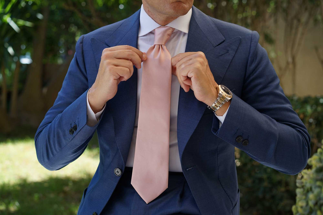 The Dusty Blush Crisp Satin Necktie is an ornate and elegant piece of attire, championing class and excellence. The Dusty Blush Pink trim of lavish satin is exclusively prepared, cut and sewn solely by hand, by the captains of class - The Brothers at OTAA, to imbue your combination with a hint of classic charm.