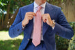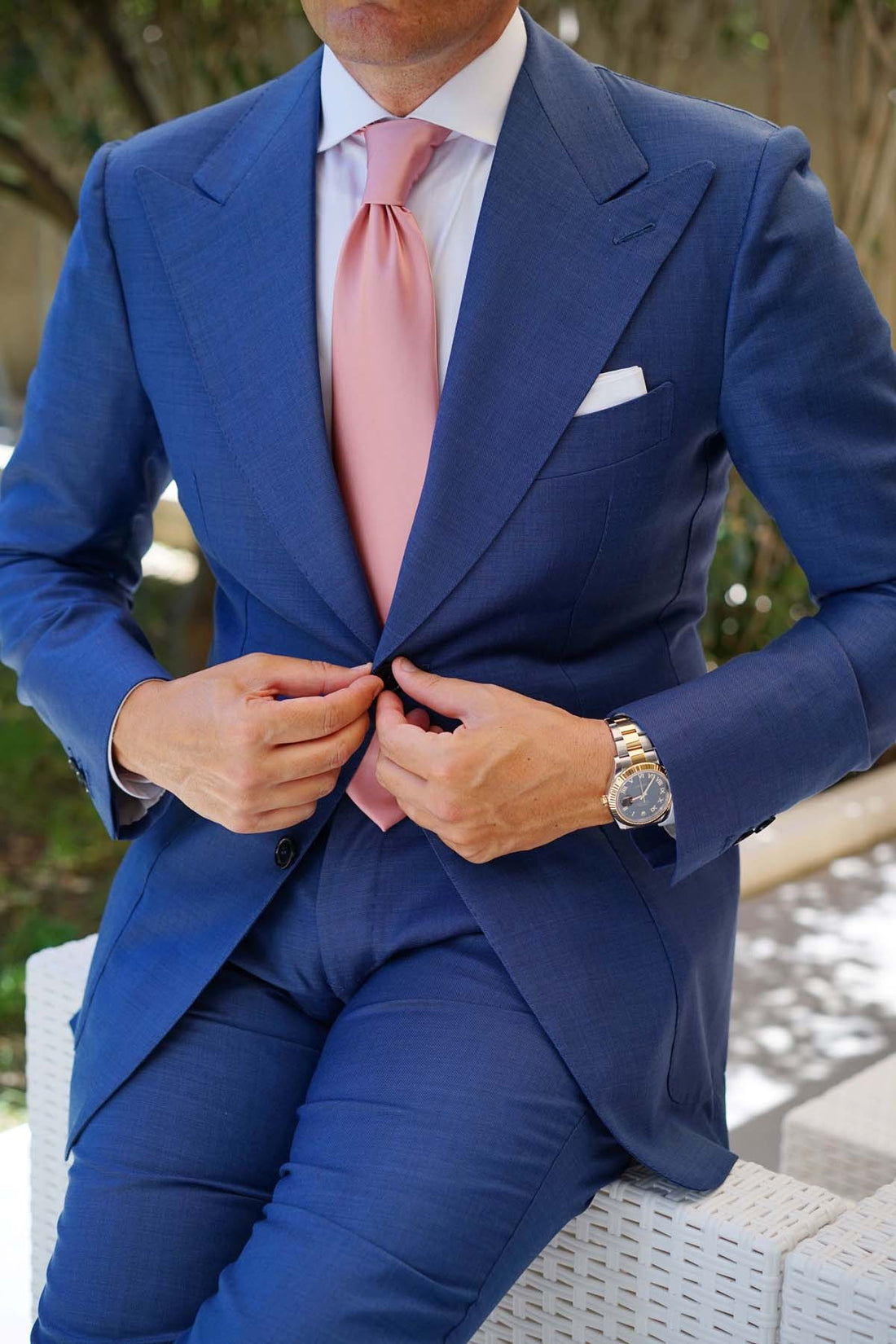 The Dusty Blush Pink Satin Necktie is an ornate and elegant piece of attire, championing class and excellence. The Dusty Blush Pink trim of lavish satin is exclusively prepared, cut and sewn solely by hand, by the captains of class - The Brothers at OTAA, to imbue your combination with a hint of classic charm.