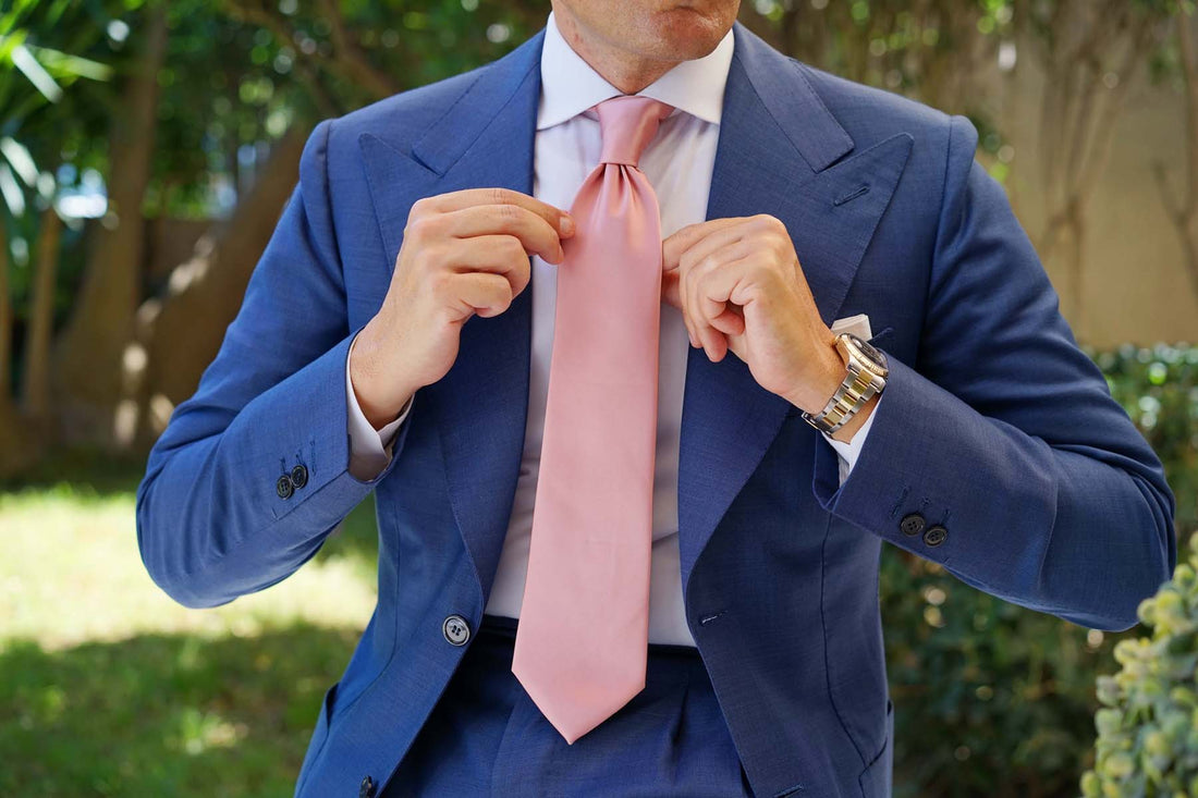 The hand-woven, elaborately stitched satin shimmers with a subtle sheen, lending an extra sense of dimension to the trim of the body. The high-quality fabric is finely textured and smooth overall. The Dusty Blush Pink Satin Tie is tailored to bring an accent of luxury to your formal combination.