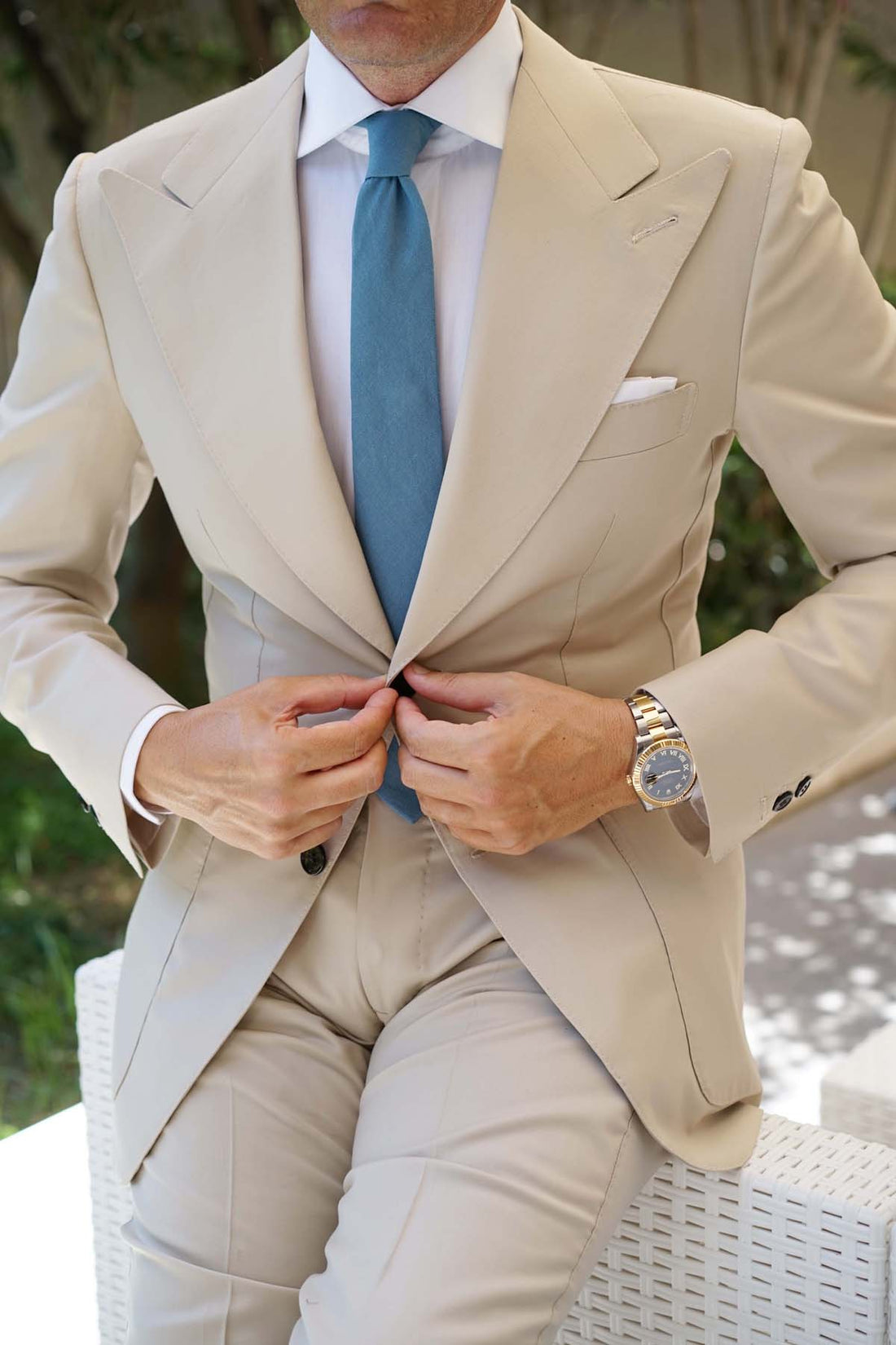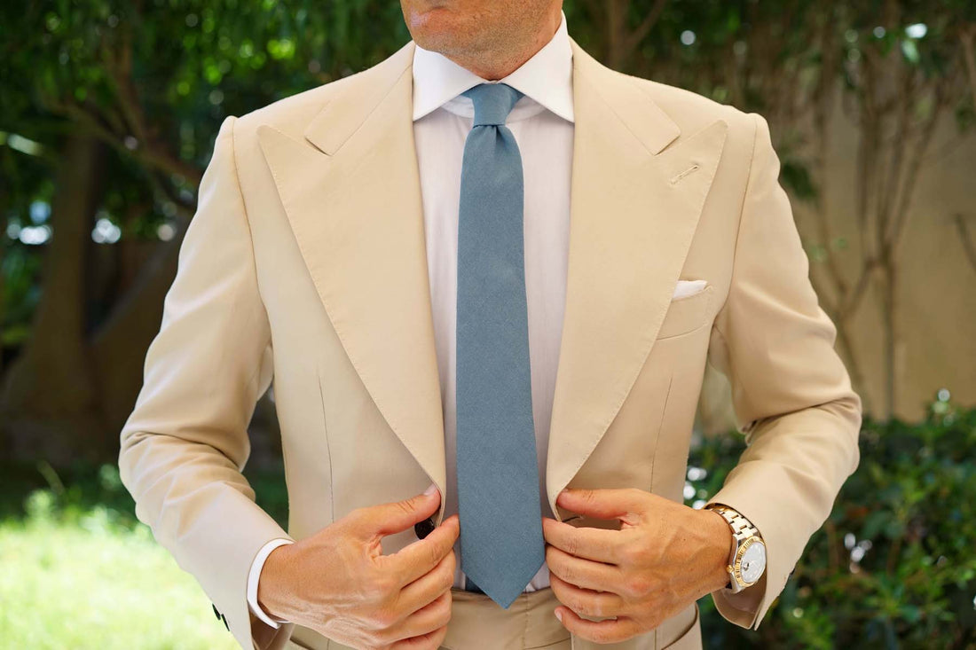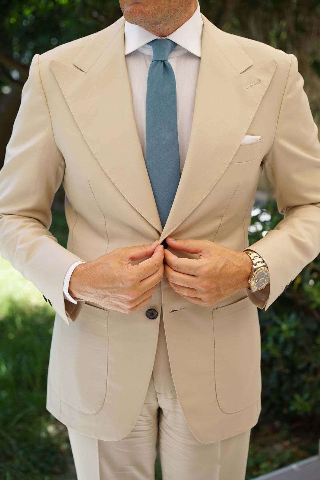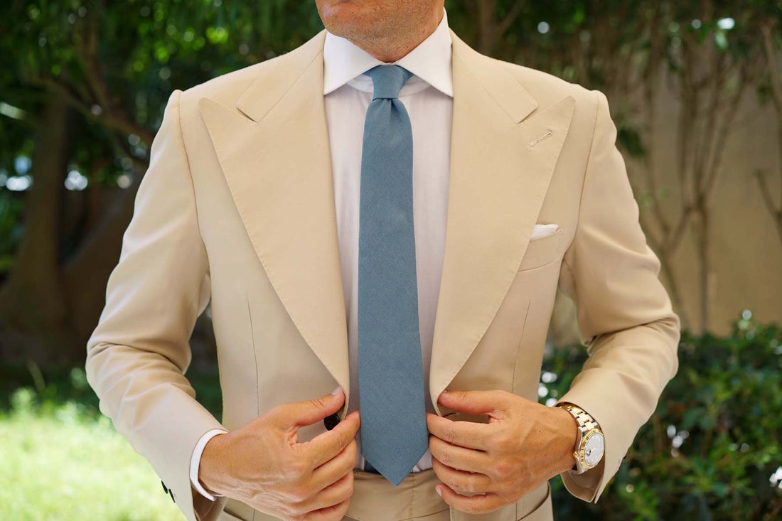 Dusty Teal Blue Linen Skinny Tie Fabric