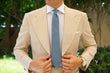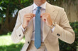 The tufted threads of premium quality linen are hand-stitched, cut and sewn to give the finely grained linen a slightly textured feel to the fabric, with subtle variations in the thickness of thread lending an understated sense of depth to the visual dynamics of the Dusty Teal Blue Linen Slim Tie. Designed exclusively by The Brothers at OTAA, this is a Slim Tie to watch and a hard one to take your eyes off once you’ve started.