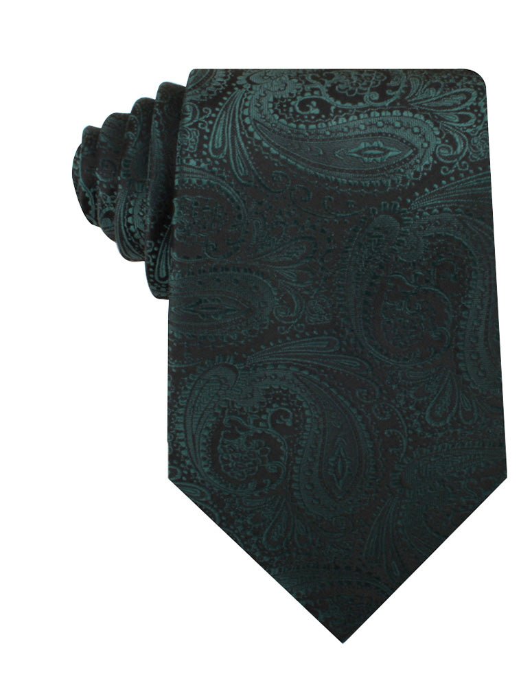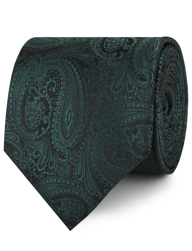 The Emerald Green Paisley Necktie makes a refined statement. The deep emerald green details cast themselves beautifully against the charcoal black matte backing of satin, with a hint of shimmer and depth. The intricately woven paisley motif shines out like an emerald gem against the night sky or the stylized decal of a boat cutting through waves beneath the splendid Aurora Borealis.