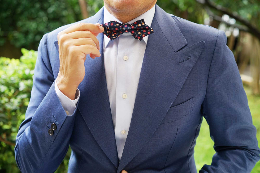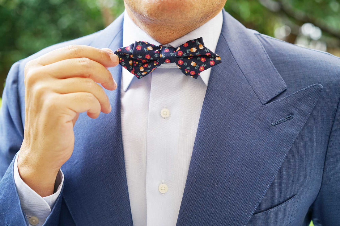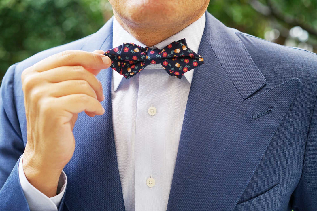 OTAA's English Dahlias Floral Diamond Bowtie makes a flamboyant statement. According to our dusty history book, English Dahlias are actually Mexican. The story goes that in 1525, King Philip ordered Francisco Hernandez of Spain to visit Mexico and study its ‘natural products’. Truly captivated by colours of the beautiful dahlia flower, Hernandez immediately called OTAA and demanded the brothers feature it on a diamond bowtie design. The English Dahlias Floral Diamond Bowtie is the result.