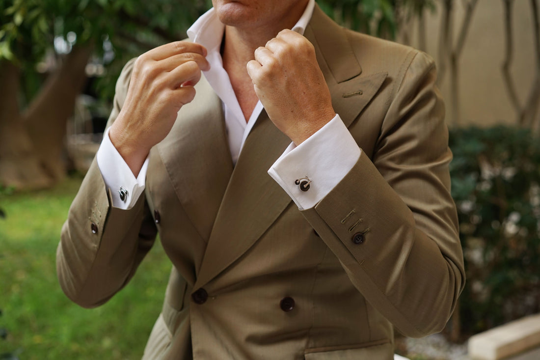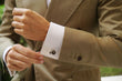Includes a small cylinder at the back that rotates 90 degrees to hold the cufflink in place
