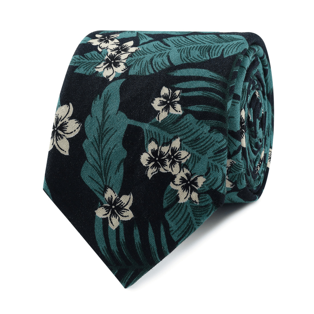 The Essaouira Emerald Palm Skinny Tie brings an exotic, tropical flair with its deep emerald hues and lush palm leaf pattern. This Skinny Tie, made from premium cotton, offers a smooth texture and elegant drape, ensuring both luxury and comfort. The rich green tones contrasted against a dark backdrop make it perfect for those looking to add a splash of vibrancy to their wardrobe.