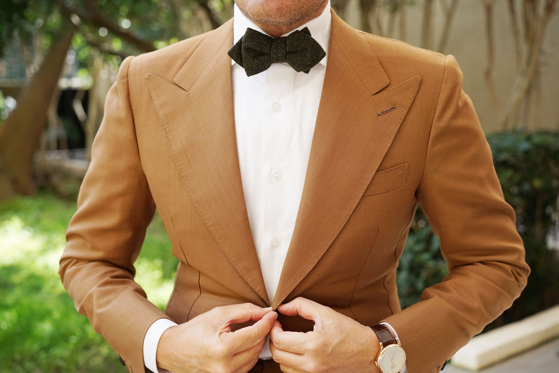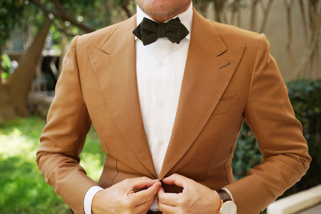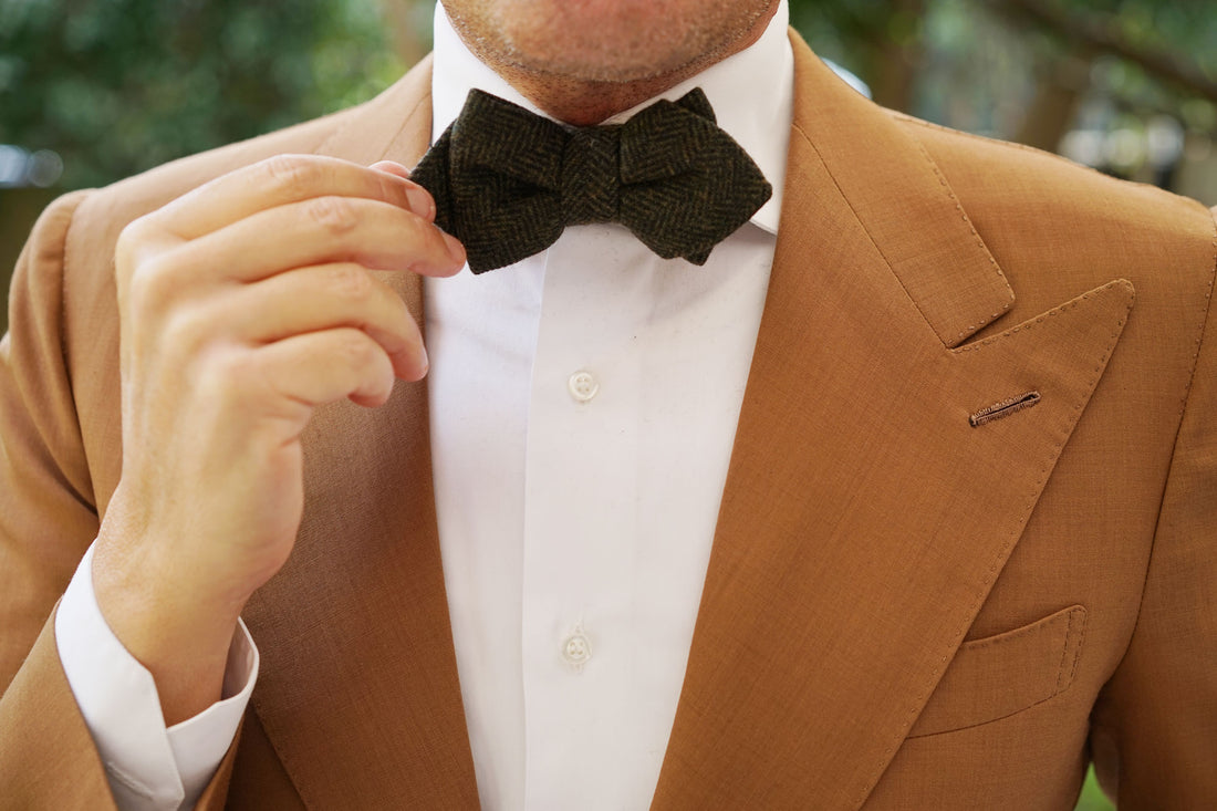 Hand-sewn with little machine interference, this Essex Green Herringbone Textured Wool Diamond Bowtie offers a thick body and a luxuriously soft surface; making it a stand-out staple for the cooler months. The dark green and black hues are complemented by a refined herringbone design to elevate your workweek looks with an intricate feel. Designed exclusively by the Brothers at OTAA.
