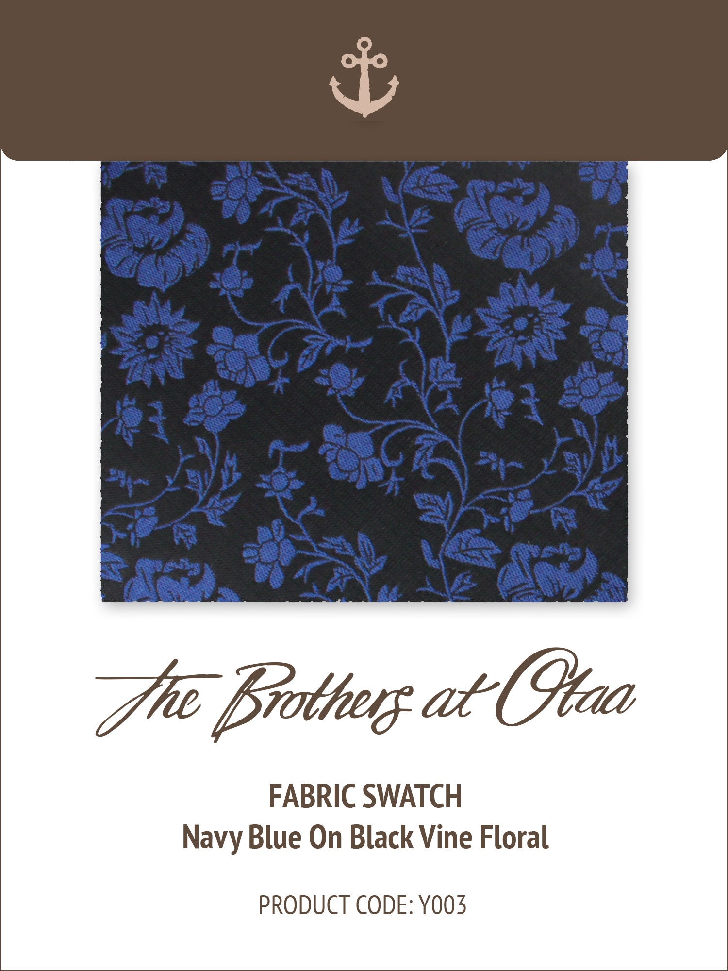 Can’t pick from a few top-notch fabrics and wish you could to take a closer look? For those awesome occasions when a photo just won’t do the trick our fabric swatches have you covered. Grab our Navy Blue on Black Vine Floral Fabric Swatch Card for a closer inspection.