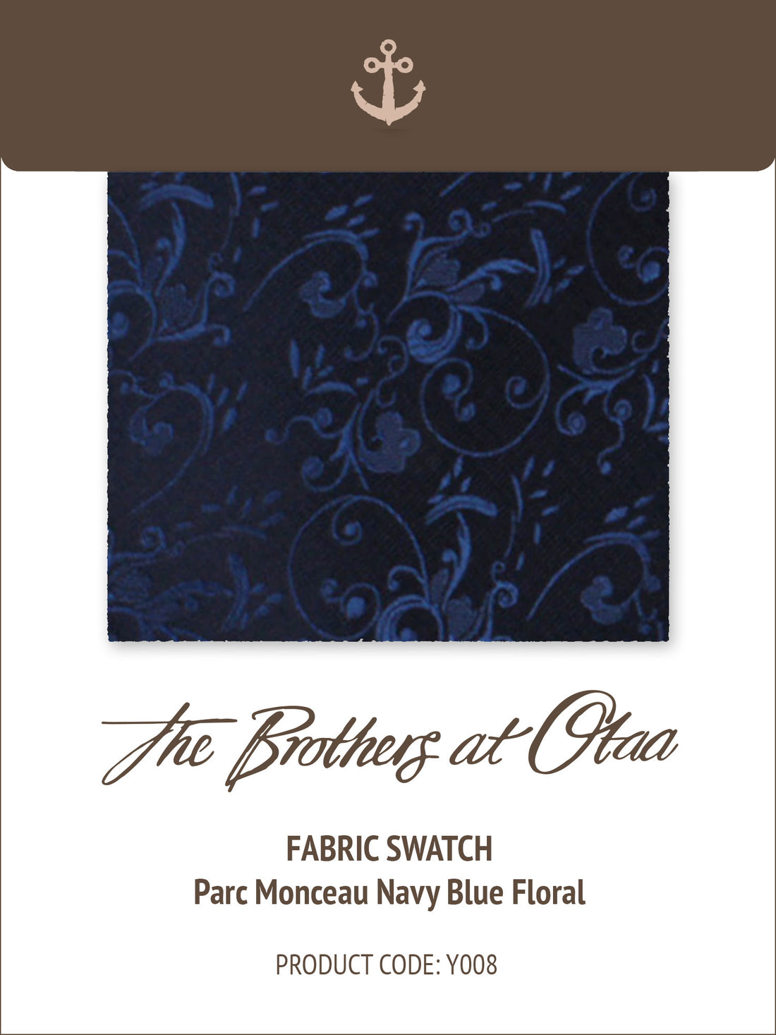 Can’t pick from a few top-notch fabrics and wish you could to take a closer look? For those awesome occasions when a photo just won’t do the trick our fabric swatches have you covered. Grab our Parc Monceau Navy Blue Floral Fabric Swatch Card for a closer inspection.
