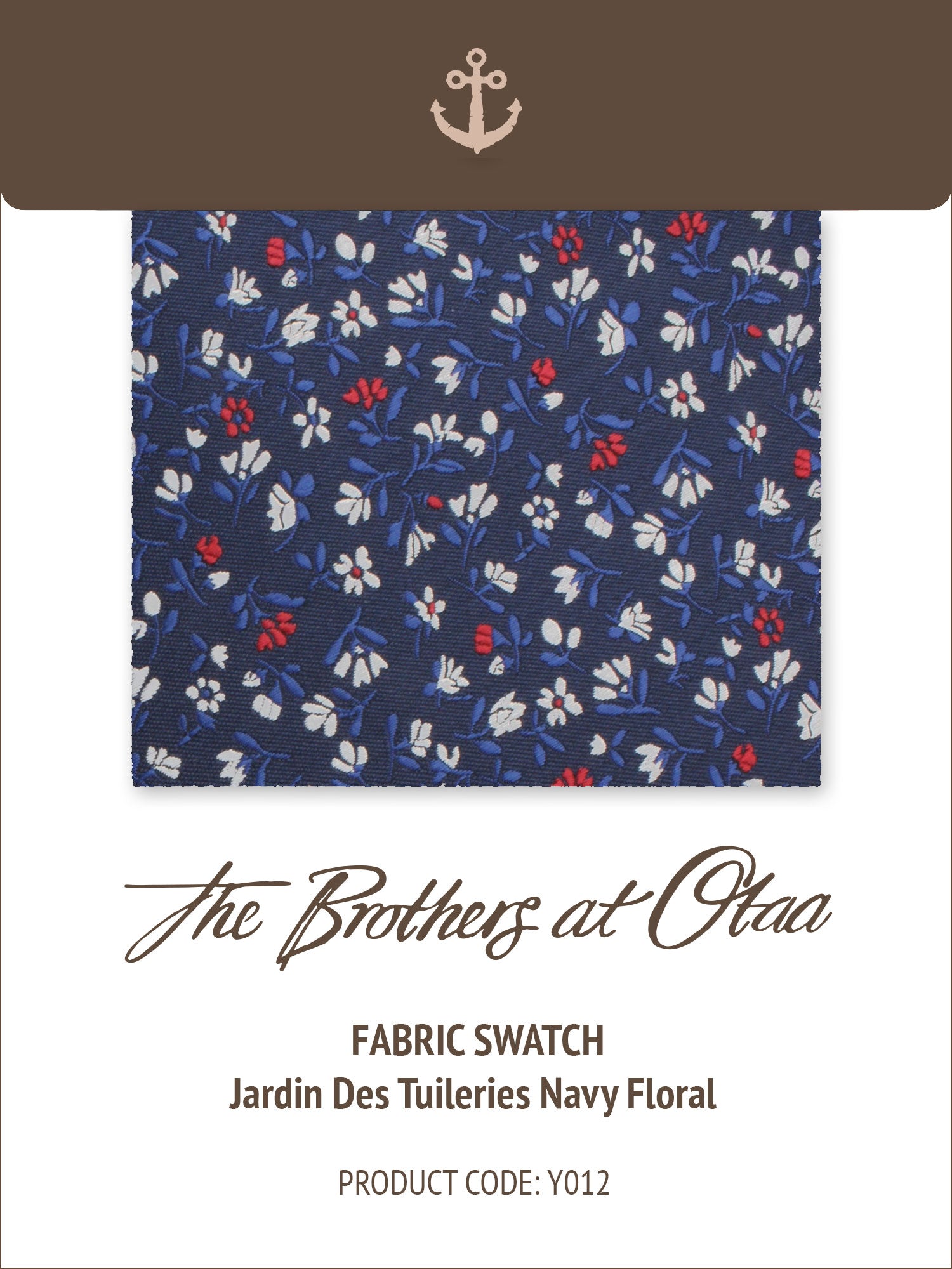 Can’t pick from a few top-notch fabrics and wish you could to take a closer look? For those awesome occasions when a photo just won’t do the trick our fabric swatches have you covered. Grab our Jardin des Tuileries Navy Floral Fabric Swatch Card for a closer inspection.
