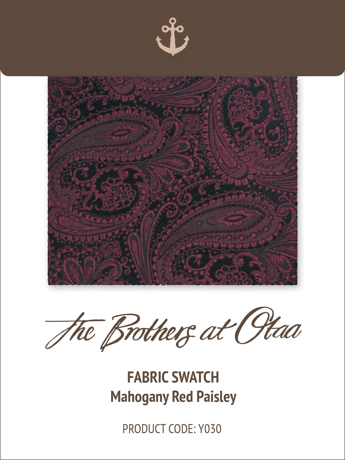 Can’t pick from a few top-notch fabrics and wish you could to take a closer look? For those awesome occasions when a photo just won’t do the trick our fabric swatches have you covered. Grab our Mahogany Red Paisley Fabric Swatch Card for a closer inspection.