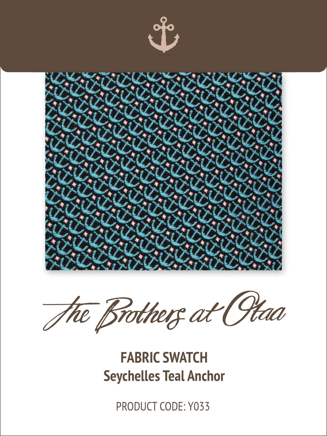 Can’t pick from a few top-notch fabrics and wish you could to take a closer look? For those awesome occasions when a photo just won’t do the trick our fabric swatches have you covered. Grab our Seychelles Teal Anchor Fabric Swatch Card for a closer inspection.
