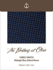 Can’t pick from a few top-notch fabrics and wish you could to take a closer look? For those awesome occasions when a photo just won’t do the trick our fabric swatches have you covered. Grab our Midnight Blue Oxford Weave Fabric Swatch Card for a closer inspection.