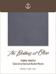 Can’t pick from a few top-notch fabrics and wish you could to take a closer look? For those awesome occasions when a photo just won’t do the trick our fabric swatches have you covered. Grab our Slate Grey Charcoal Basket Weave Fabric Swatch Card for a closer inspection.