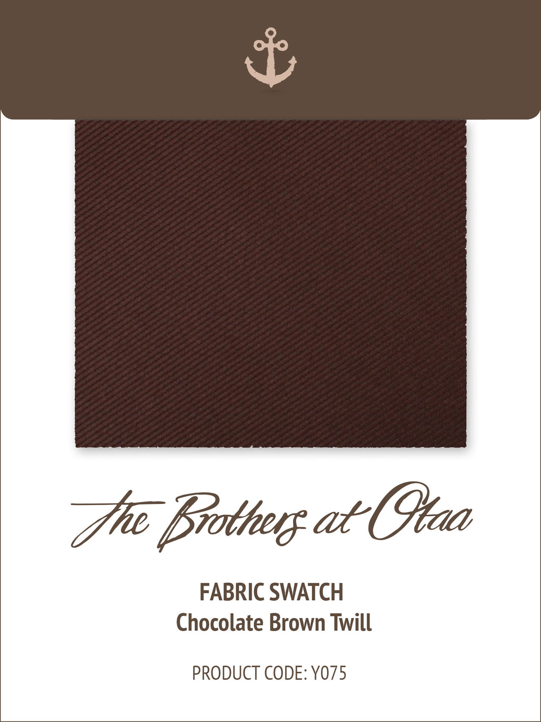 Can’t pick from a few top-notch fabrics and wish you could to take a closer look? For those awesome occasions when a photo just won’t do the trick our fabric swatches have you covered. Grab our Chocolate Brown Twill Fabric Swatch Card for a closer inspection.