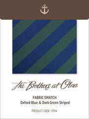 Can’t pick from a few top-notch fabrics and wish you could to take a closer look? For those awesome occasions when a photo just won’t do the trick our fabric swatches have you covered. Grab our Oxford Blue & Dark Green Striped Fabric Swatch Card for a closer inspection.