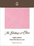 Can’t pick from a few top-notch fabrics and wish you could to take a closer look? For those awesome occasions when a photo just won’t do the trick our fabric swatches have you covered. Grab our Tickled Pink Chevron Linen Fabric Swatch Card for a closer inspection.