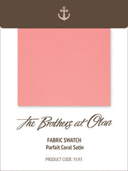 Can’t pick from a few top-notch fabrics and wish you could to take a closer look? For those awesome occasions when a photo just won’t do the trick our fabric swatches have you covered. Grab our Parfait Coral Satin Fabric Swatch Card for a closer inspection.