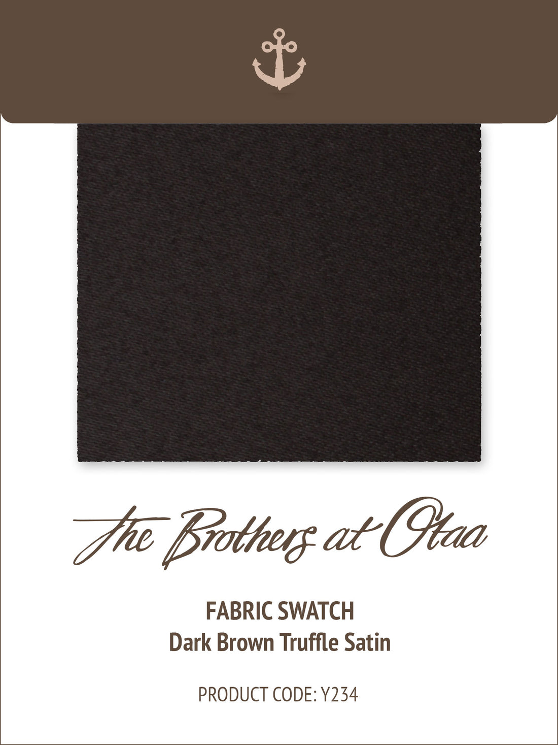 Can’t pick from a few top-notch fabrics and wish you could to take a closer look? For those awesome occasions when a photo just won’t do the trick our fabric swatches have you covered. Grab our Dark Brown Truffle Satin Fabric Swatch Card for a closer inspection.