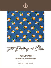 Can’t pick from a few top-notch fabrics and wish you could to take a closer look? For those awesome occasions when a photo just won’t do the trick our fabric swatches have you covered. Grab our Iwaki Blue Petunia Floral Fabric Swatch Card for a closer inspection.
