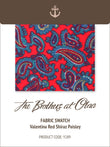 Can’t pick from a few top-notch fabrics and wish you could to take a closer look? For those awesome occasions when a photo just won’t do the trick our fabric swatches have you covered. Grab our Valentina Red Shiraz Paisley Fabric Swatch Card for a closer inspection.
