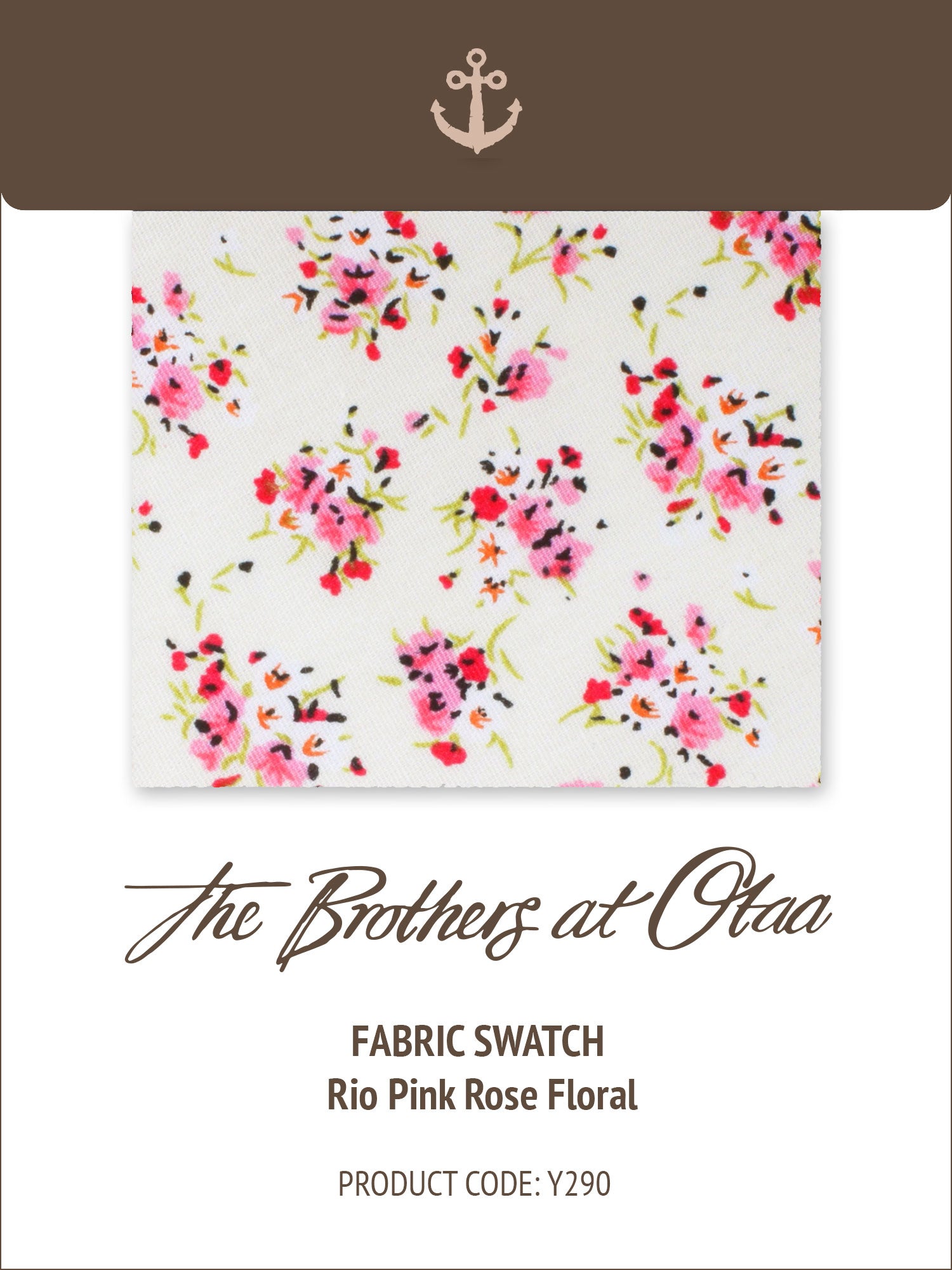 Can’t pick from a few top-notch fabrics and wish you could to take a closer look? For those awesome occasions when a photo just won’t do the trick our fabric swatches have you covered. Grab our Río Pink Rose Floral Fabric Swatch Card for a closer inspection.