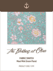 Can’t pick from a few top-notch fabrics and wish you could to take a closer look? For those awesome occasions when a photo just won’t do the trick our fabric swatches have you covered. Grab our Maui Mint Green Floral Fabric Swatch Card for a closer inspection.