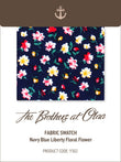 Can’t pick from a few top-notch fabrics and wish you could to take a closer look? For those awesome occasions when a photo just won’t do the trick our fabric swatches have you covered. Grab our Navy Blue Liberty Floral Flower Fabric Swatch Card for a closer inspection.