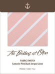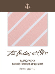 Can’t pick from a few top-notch fabrics and wish you could to take a closer look? For those awesome occasions when a photo just won’t do the trick our fabric swatches have you covered. Grab our Santorini Pink Blush Striped Linen Fabric Swatch Card for a closer inspection.