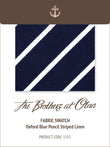Can’t pick from a few top-notch fabrics and wish you could to take a closer look? For those awesome occasions when a photo just won’t do the trick our fabric swatches have you covered. Grab our Oxford Blue Pencil Striped Linen Fabric Swatch Card for a closer inspection.