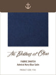 Can’t pick from a few top-notch fabrics and wish you could to take a closer look? For those awesome occasions when a photo just won’t do the trick our fabric swatches have you covered. Grab our Admiral Navy Blue Satin Fabric Swatch Card for a closer inspection.