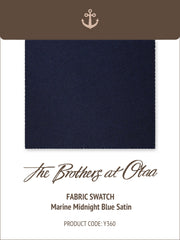 Can’t pick from a few top-notch fabrics and wish you could to take a closer look? For those awesome occasions when a photo just won’t do the trick our fabric swatches have you covered. Grab our Marine Midnight Blue Satin Fabric Swatch Card for a closer inspection.