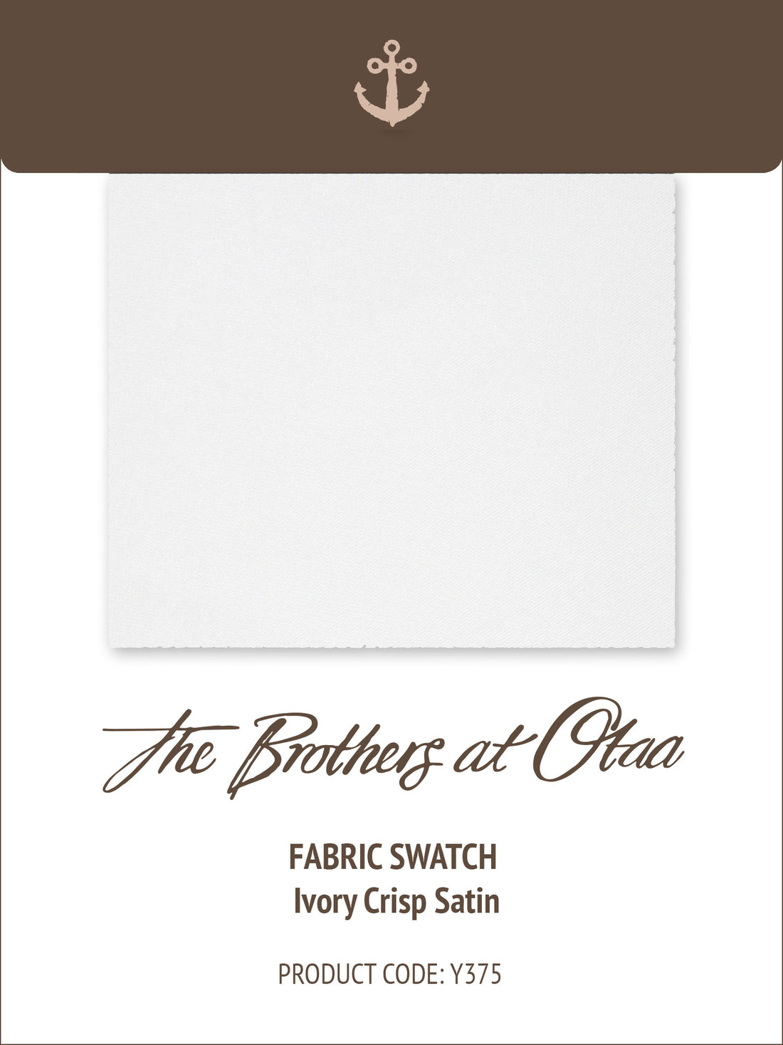 Can’t pick from a few top-notch fabrics and wish you could to take a closer look? For those awesome occasions when a photo just won’t do the trick our fabric swatches have you covered. Grab our Ivory Crisp Satin Fabric Swatch Card for a closer inspection.