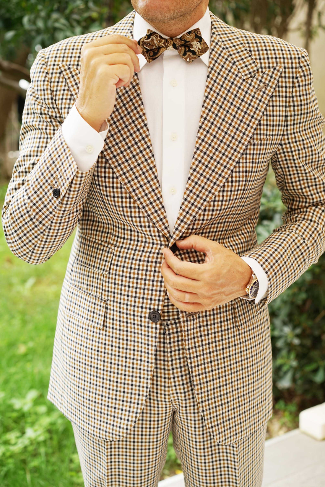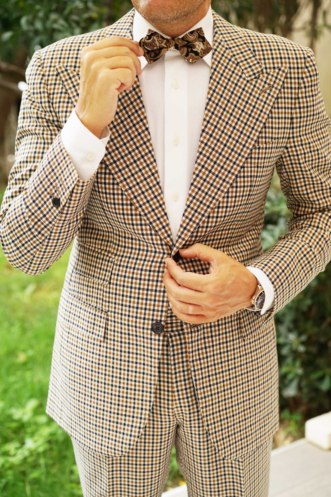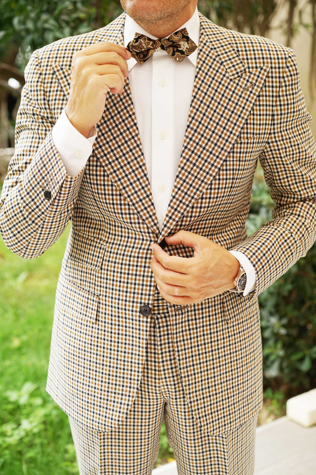 Paisley patterns have long held regal associations; they were reserved for noble regalia in Ancient Persia, and in Europe, they were high in-demand during the 17th century. Finessed with an intricate floral paisley design, this diamond bowtie features various tones of brown and beige atop an indulgent black background. Stitched by hand and tailored with elegance, the Filicudi Brown Paisley Diamond Pre-Tied Bowtie showcases the label's dedication to world class quality. Designed exclusively by the Brothers at OTAA.